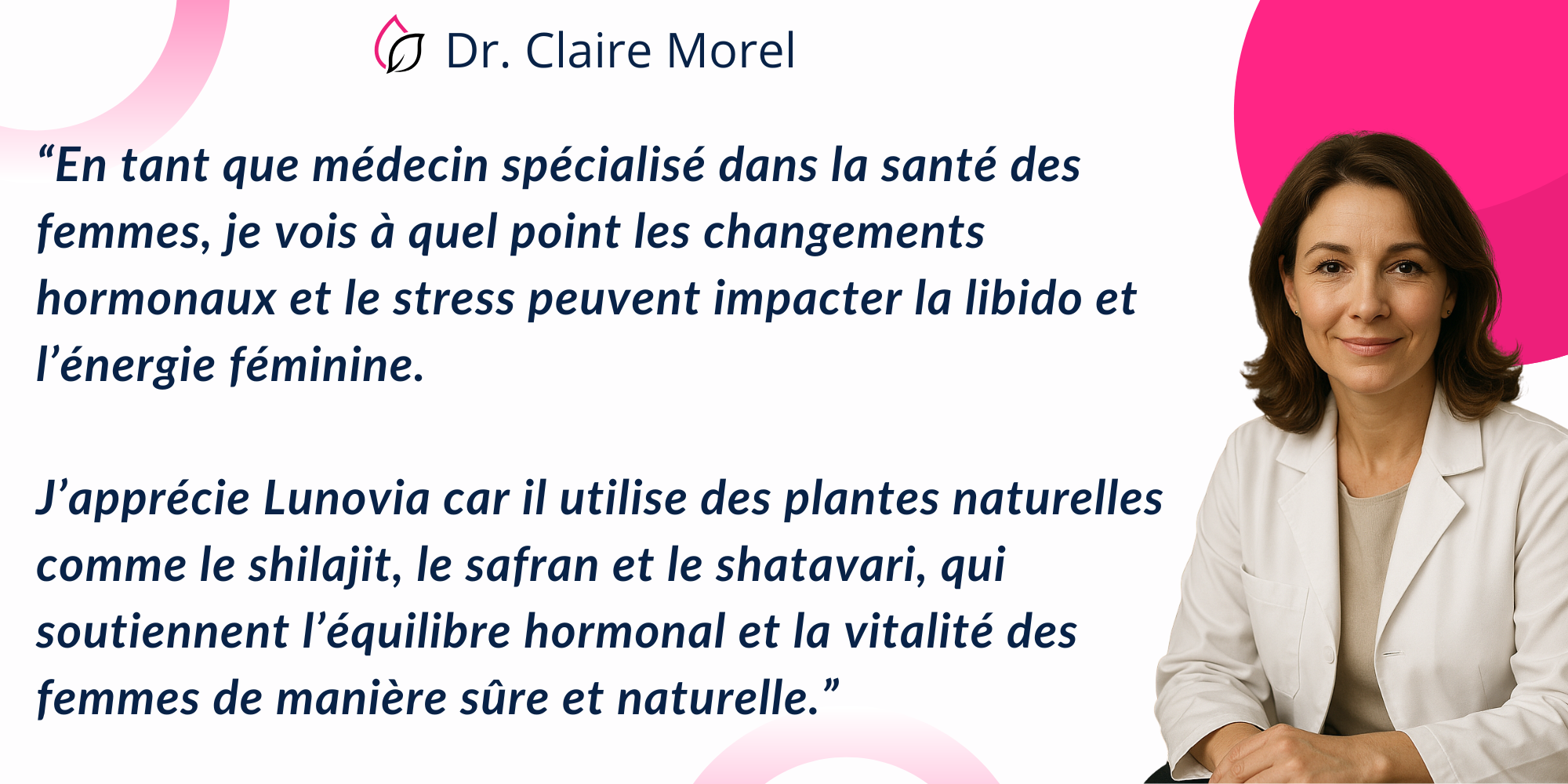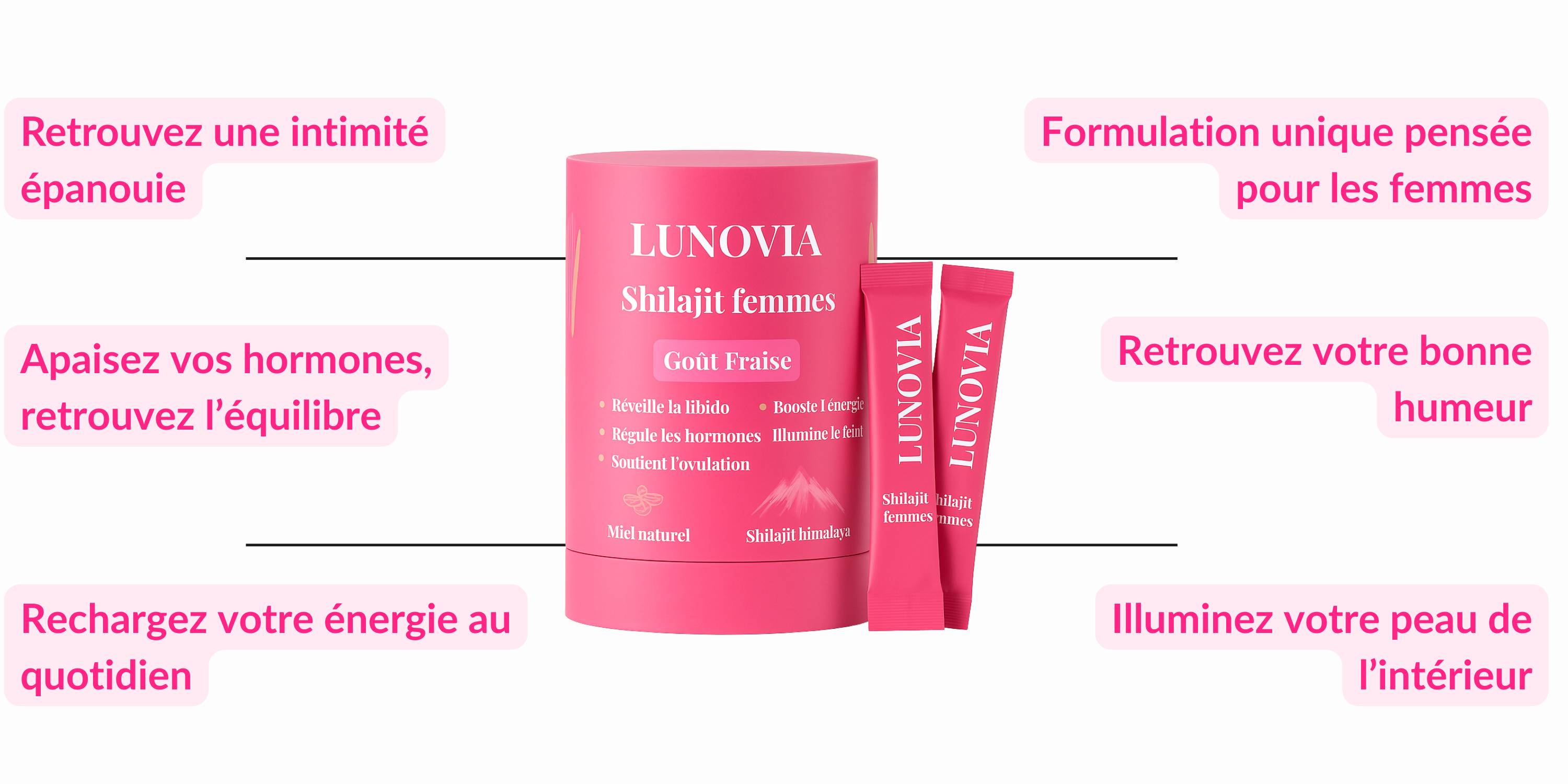 La formule Lunovia a été spécialement conçue pour répondre aux besoins des femmes (hormones, ovulation, libido féminine). Mais certains ingrédients, comme le shilajit ou le safran, sont bénéfiques aussi pour les hommes, notamment sur l’énergie et la vitalité.